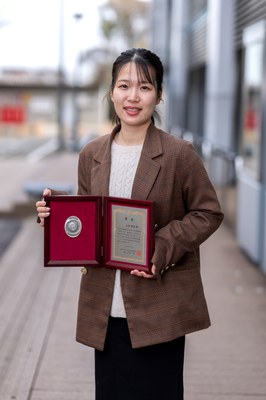 (Right) With the plaque commemorating the prestigious JSPS Ikushi Prize in 2025