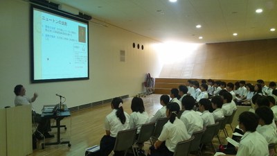 講演タイトルは「ヒッグス粒子の謎」。7月上旬に世界中で話題となったタイムリーな内容と、随所に「自ら学ぶことに意欲を持ち、課題を自分で見つけ解決できる人になってほしい」というメッセージがちりばめられた“熱い”夏の講義となった。
