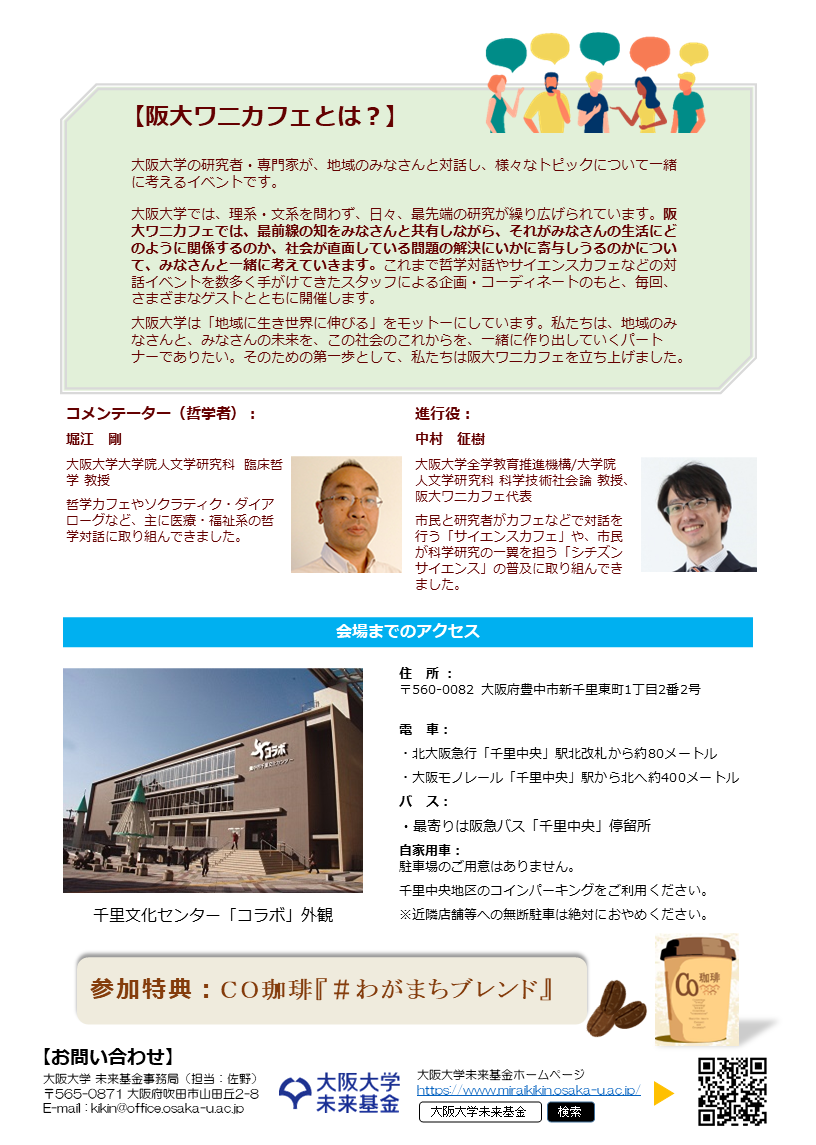 【詳しくはこちら】 阪大ワニカフェ | 大阪大学 21世紀懐徳堂 (osaka-u.ac.jp)